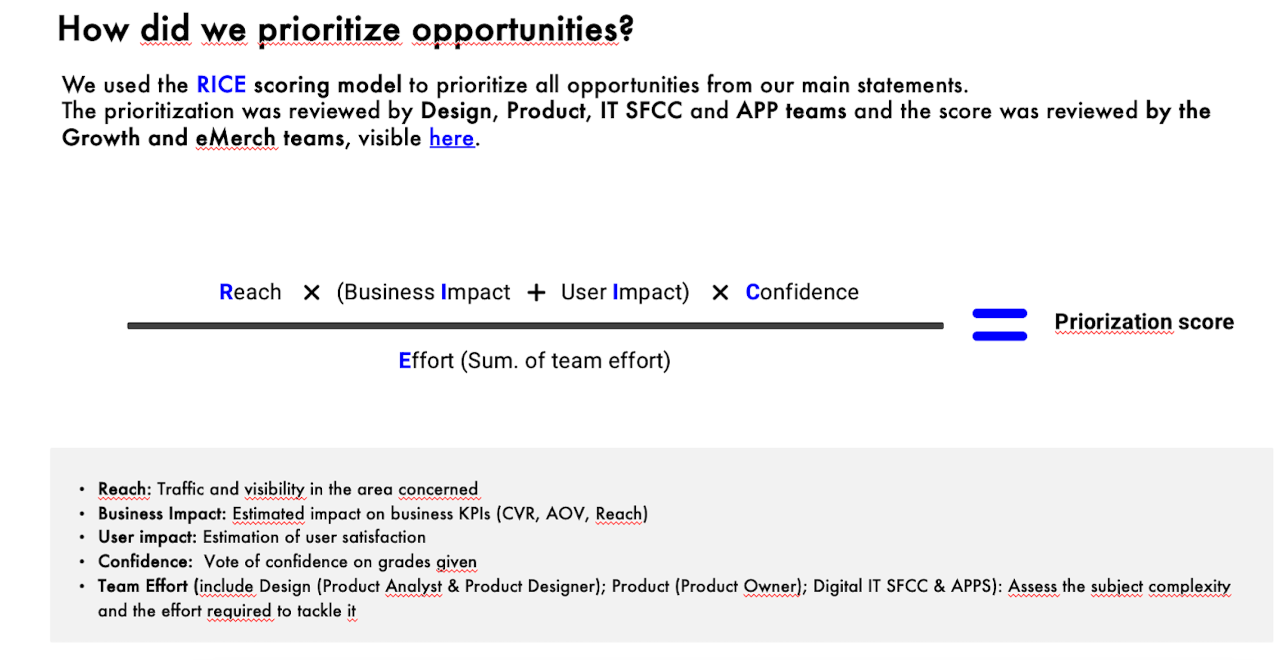 Pour la valeur Business Impact, nous l’avons validé avec l’équipe Produit, Design, nos principaux stakeholders ainsi que l’équipe eMerch qui gère les pays et la bonne contribution sur le sujet.