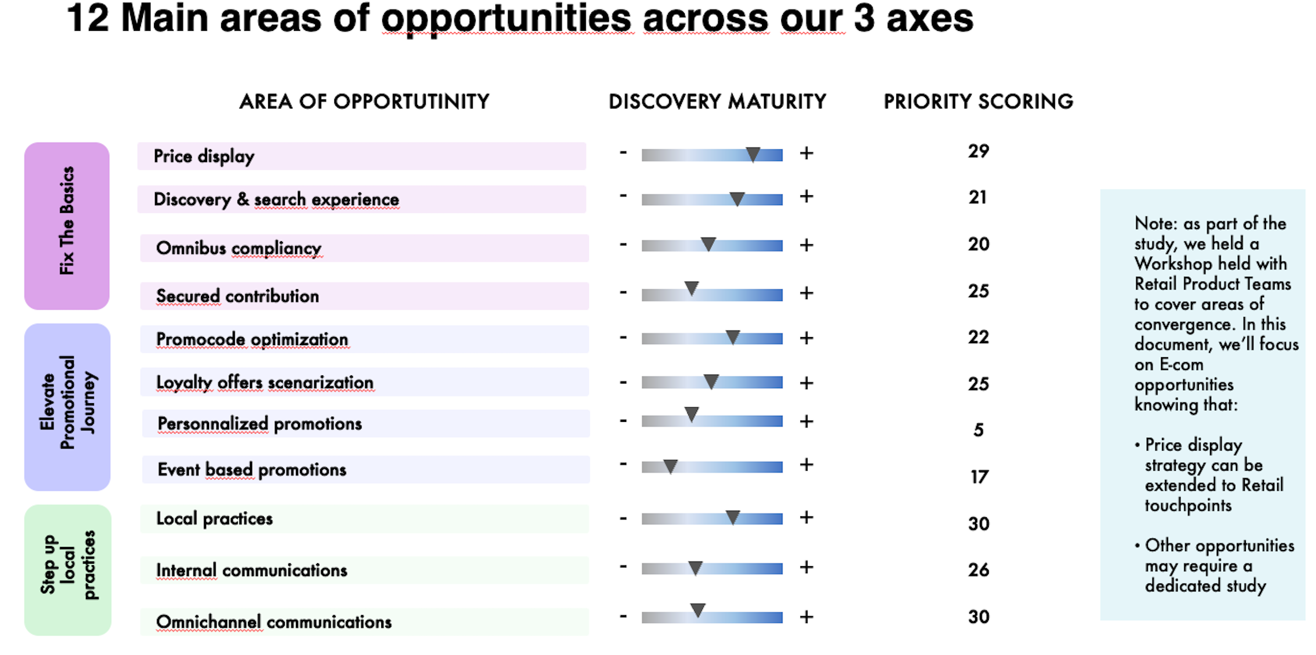 Une fois toutes ces infos obtenues et que les points de douleur sont clairs et identifiés, nous avons identifié des opportunités sur lesquelles potentiellement travailler.